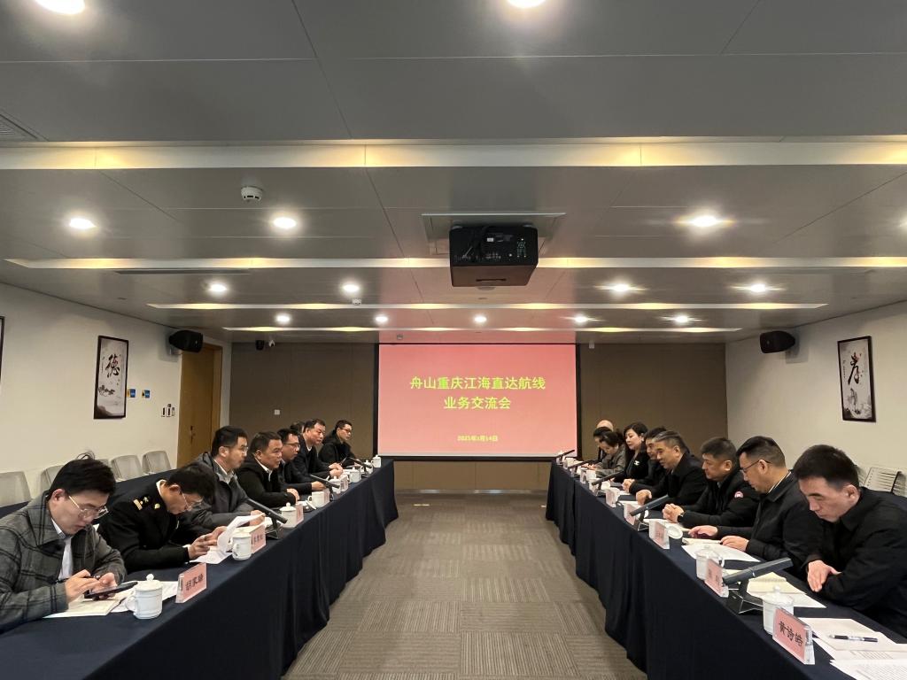 2月14日,屈宏一行转赴舟山市,与舟山市港航和口岸管理局召开“舟山重庆江海直达航线业务交流会”?;嵘?,双方就航线流程、货源组织、政策扶持等工作进行了交流。双方一致表示,将构建“重去重回”的运输模式,加速推进江海直达体系建设,提升航线时效性,并在船员培训等方面开展务实合作,进一步深化区域港口资源协同,为两地高质量发展注入新动能。