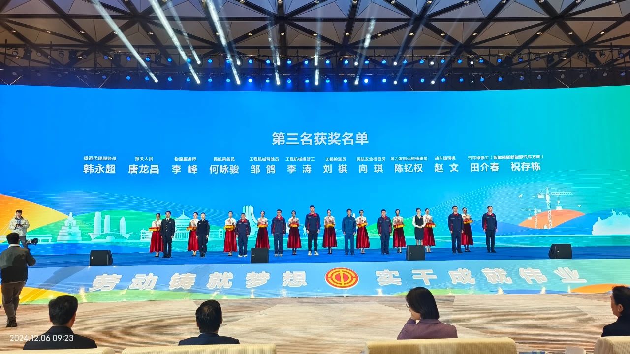 2024年桂渝川甘青新六?。ㄇ⑹校┪鞑柯胶P峦ǖ澜ㄉ枞煨岳投图寄芫喝?个月,于12月6日,圆满落下帷幕,重庆港珞璜公司职工邹鸽、何智勇、田黎代表重庆市总工会参加工程机械驾驶员、工程机械维修工...2024-12-09